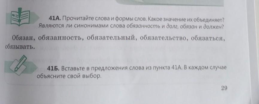 41Б. Вставьте в предложения слова из пункта 41А. В каждом случае