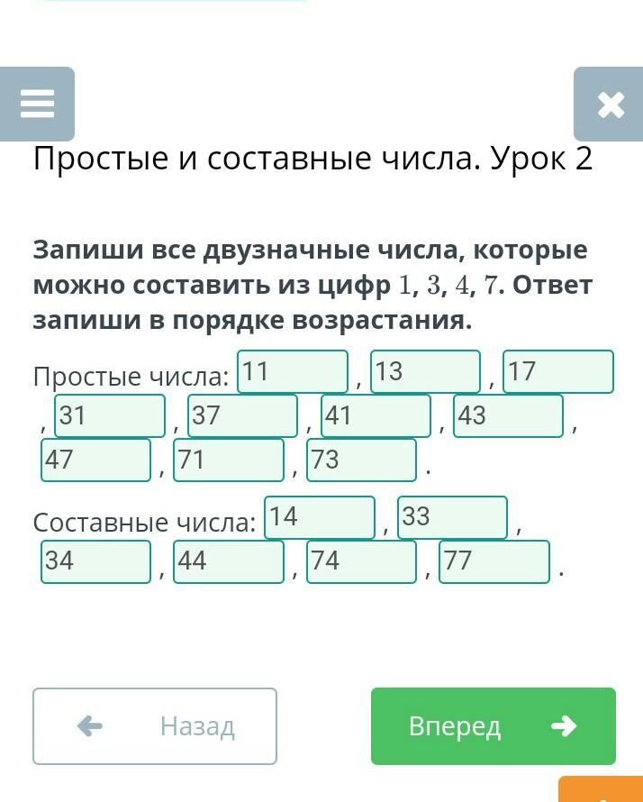 Запиши все двузначные числа, которые можно составить из цифр 1, 3, 4, 7. Ответ запиши в порядке возрастания.