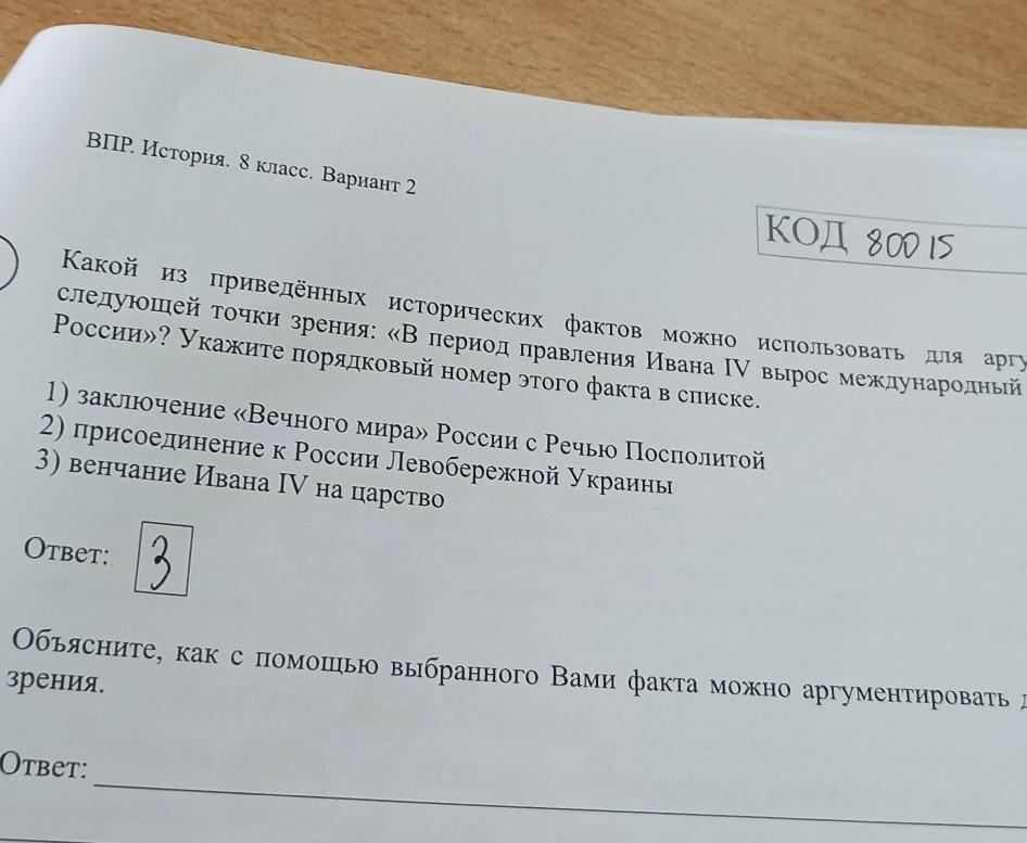 какой из приведенных исторических фактов можно использовать для аргументации следующей точки зрения "в период правления Ивана вырос международный авторитет