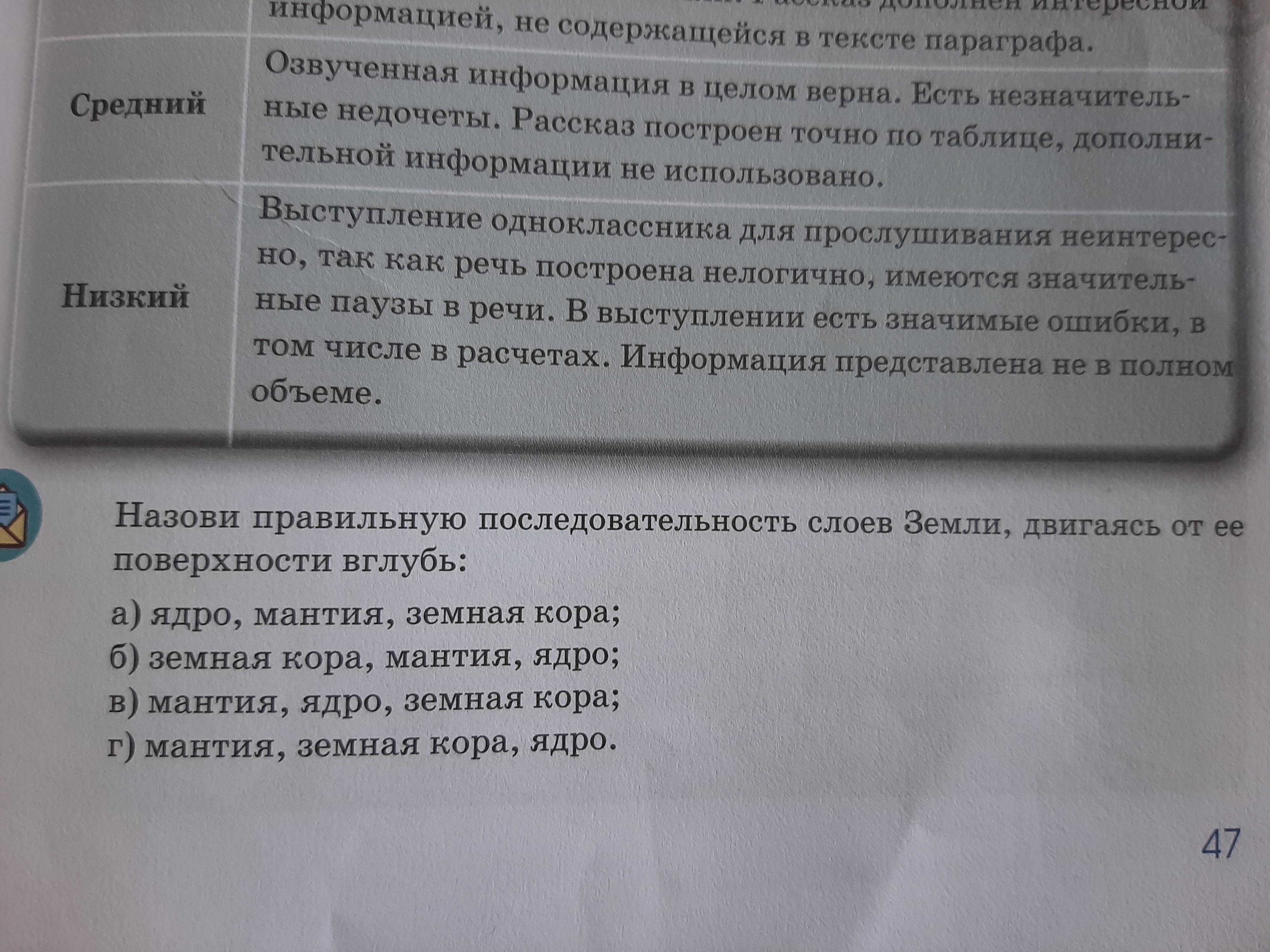 Назови правильную последовательность слоёв Земли, двигаясь от ее поверхности вглубь