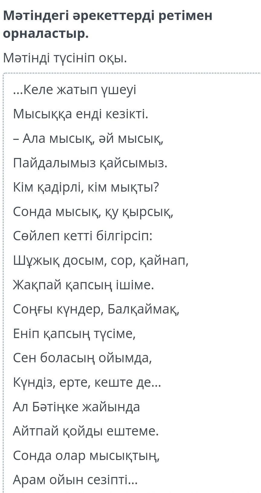 Мәтіндегі әрекеттерді ретімен орналастыр.