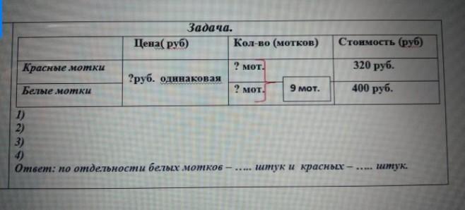 3) 320:80=4 красных мотков