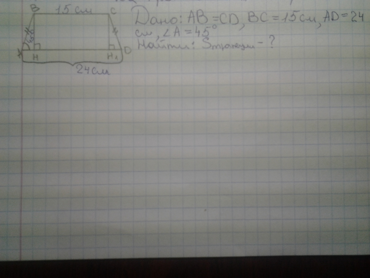 S=(a+b)*h/2=(24+15)*4.5/2=87.75см^2