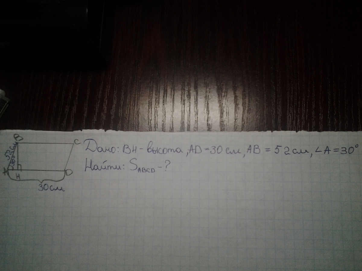 S=a*b*sin30=52*30*1/2=780см^2