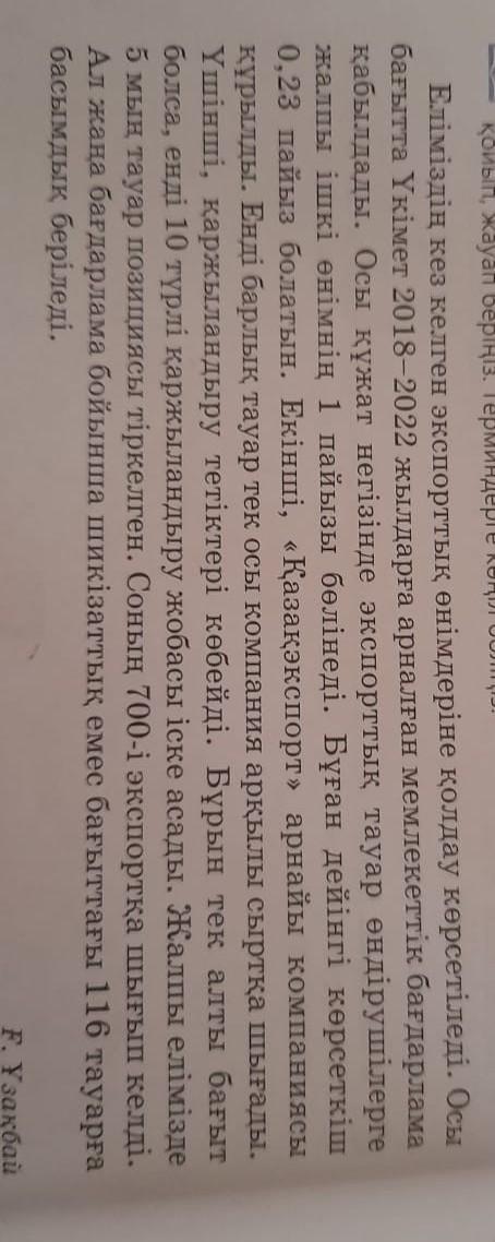 1)Еліміздің кез келген экспорттық өнімдеріне не көрсетеді?