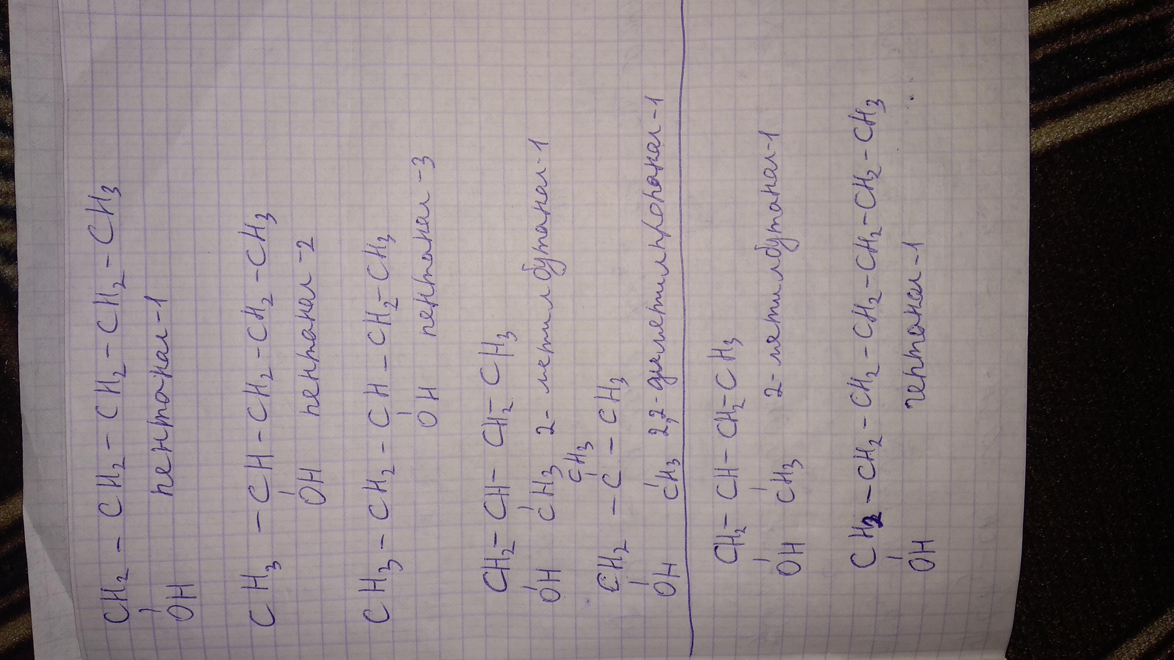 изоемеры 1 ch3ch2ch2ch2ch2oh пентанол1 2 ch3ch2ch2ch(oh)ch3 пентанол2 3 ch3ch2ch(oh)ch2ch3 пентанол3 4 ch3-o-ch2ch2ch2ch3 метилбутиловый эфир 5 ch3ch2-o-ch2ch2ch3 этилпропиловый эфир; структурные формулы: ch2(oh)ch(ch3)ch2ch3 ch2(oh)ch2ch2ch2ch2ch2ch3