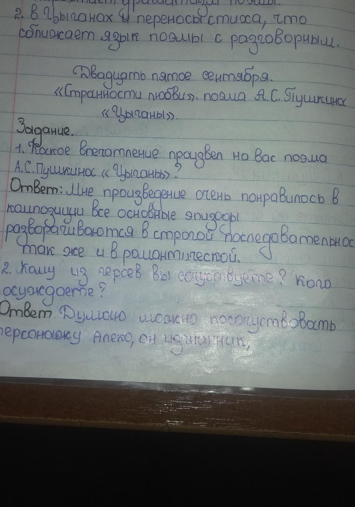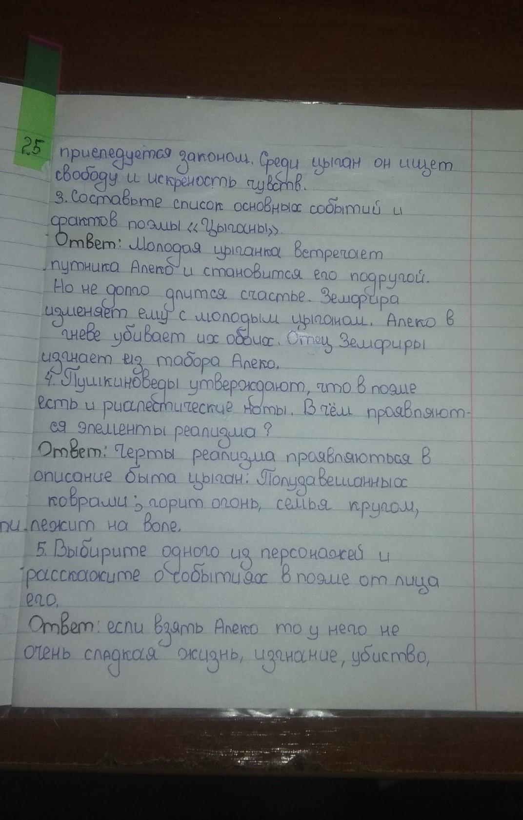 Составьте список основных событий и фактов поэмы «Цыганы».