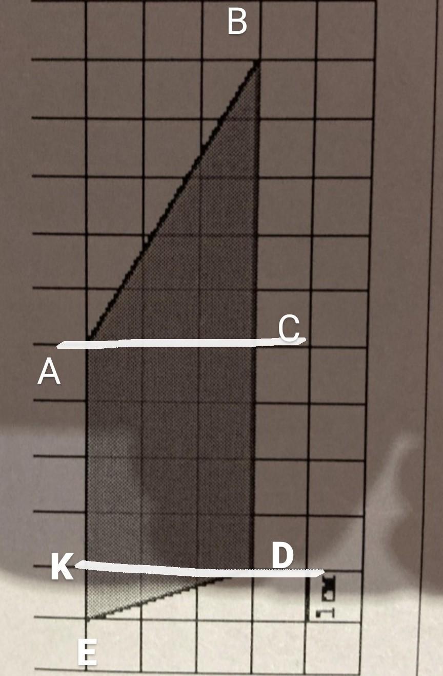 KE = 1cm, KD = 3cm. S триугольника KDE = ½* 1*3= 1,5 (cm²).