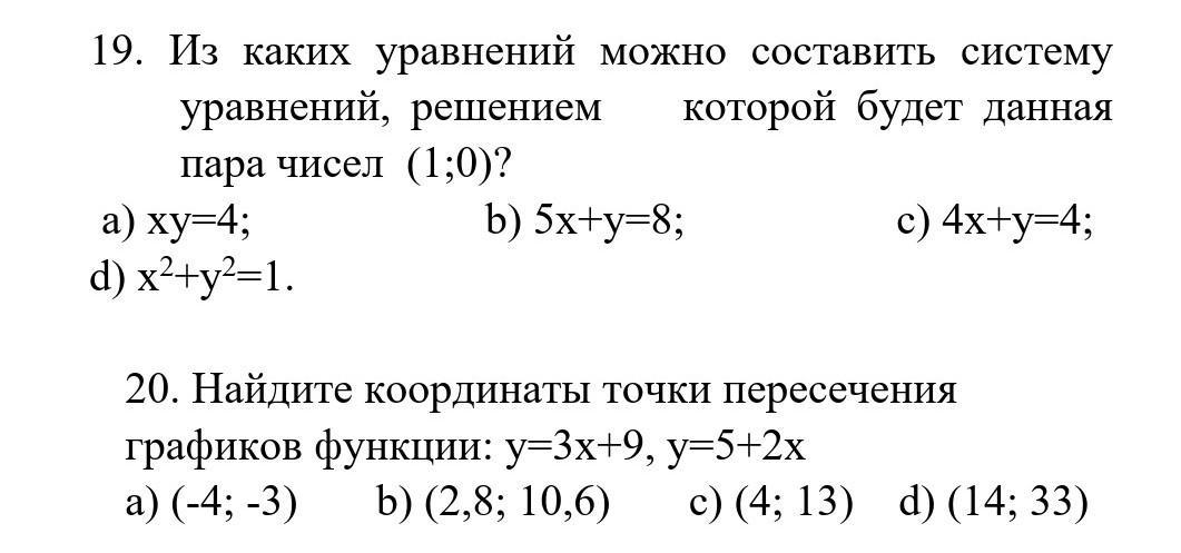 Кстати, в 20-ом ответ "а", но не такое решение нужно было. Я нашел иксы, а там тоже значения нужно подставить.