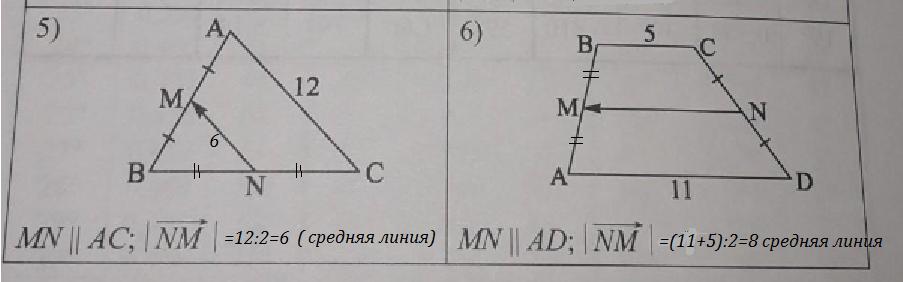 5. По Фалесу BN=CN⇒MN- средняя линия, MN=0.5*12=6