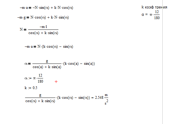 на наклонной плоскости с углом наклона α=12° лежит кубик. коэффициент трения между кубиком и плоскостью равен 0.5. наклонная плоскость движется горизантально с ускорением a. определите минимальное значение ускорения, при котором кубик начнёт соскальзывать с плоскости.