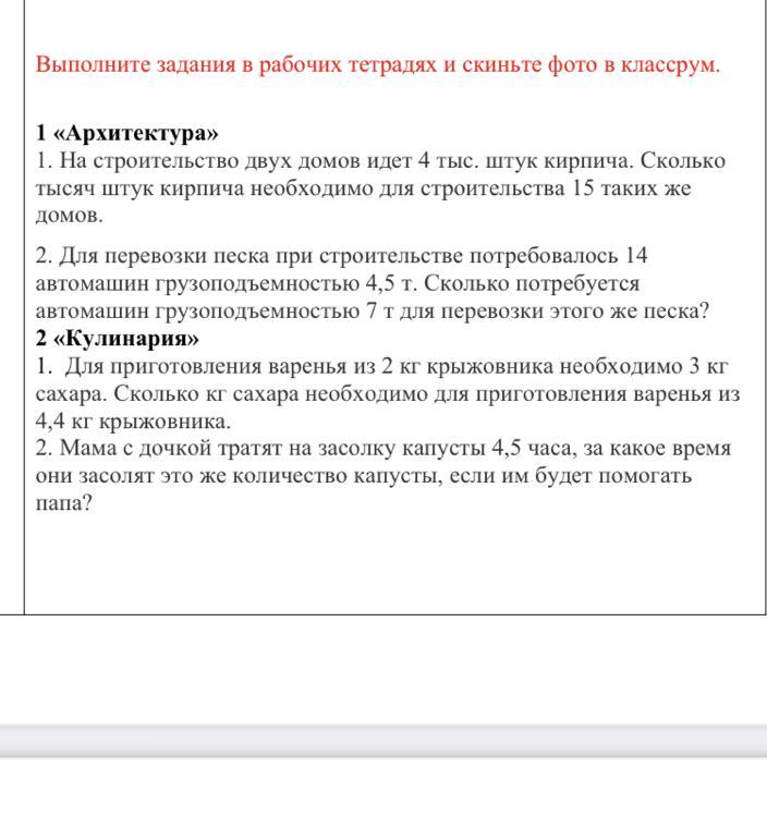 2. Мама с дочкой тратят на засолку капусты 4,5 часа, за какое время они засолят это же количество капусты, если им будет помогать папа?