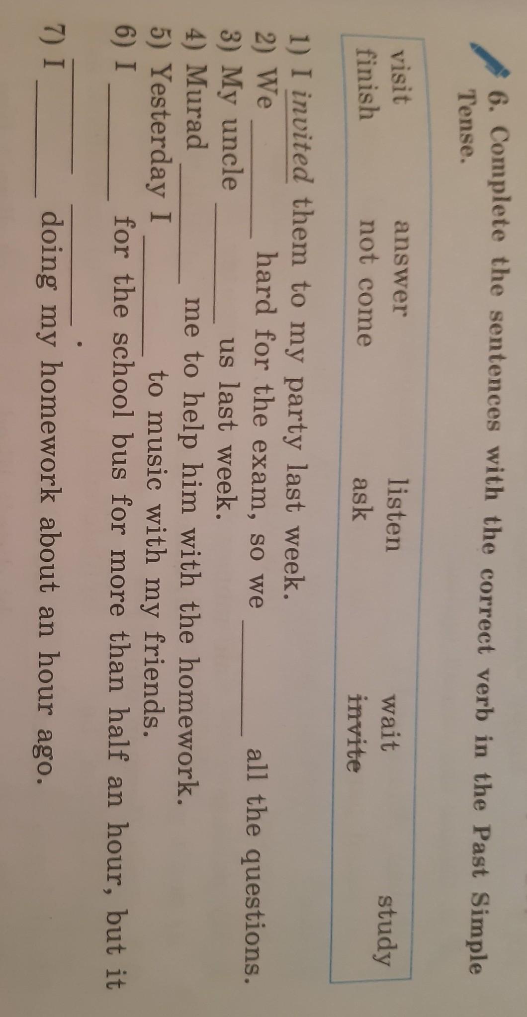 5) Yesterday I listened to music with my friends.