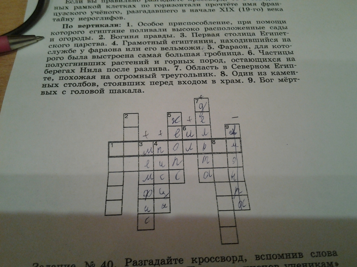 1) Шадуф. 2) Маат. 9) Анубис.