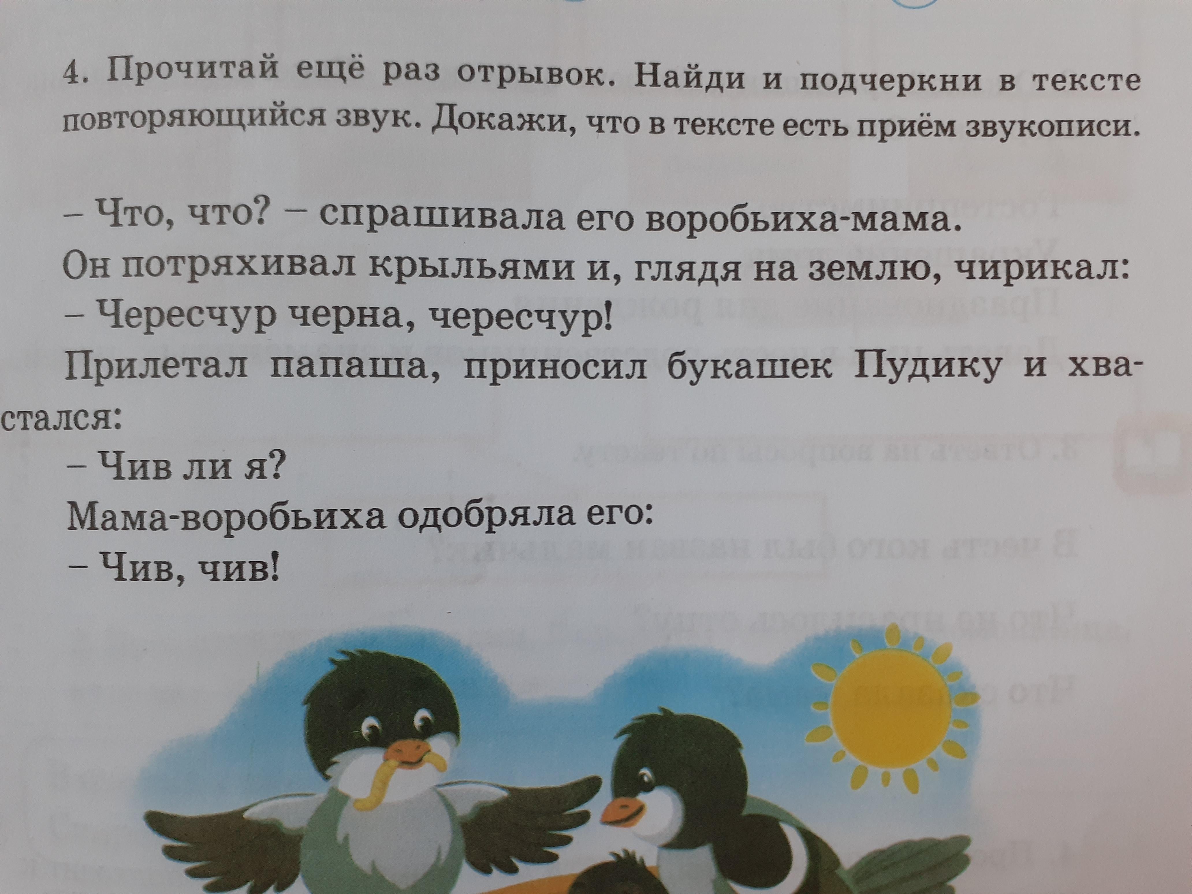 Найди и подчеркните в тексте повторяющиеся звук.Докажи что в тексте есть приём звукозаписи.