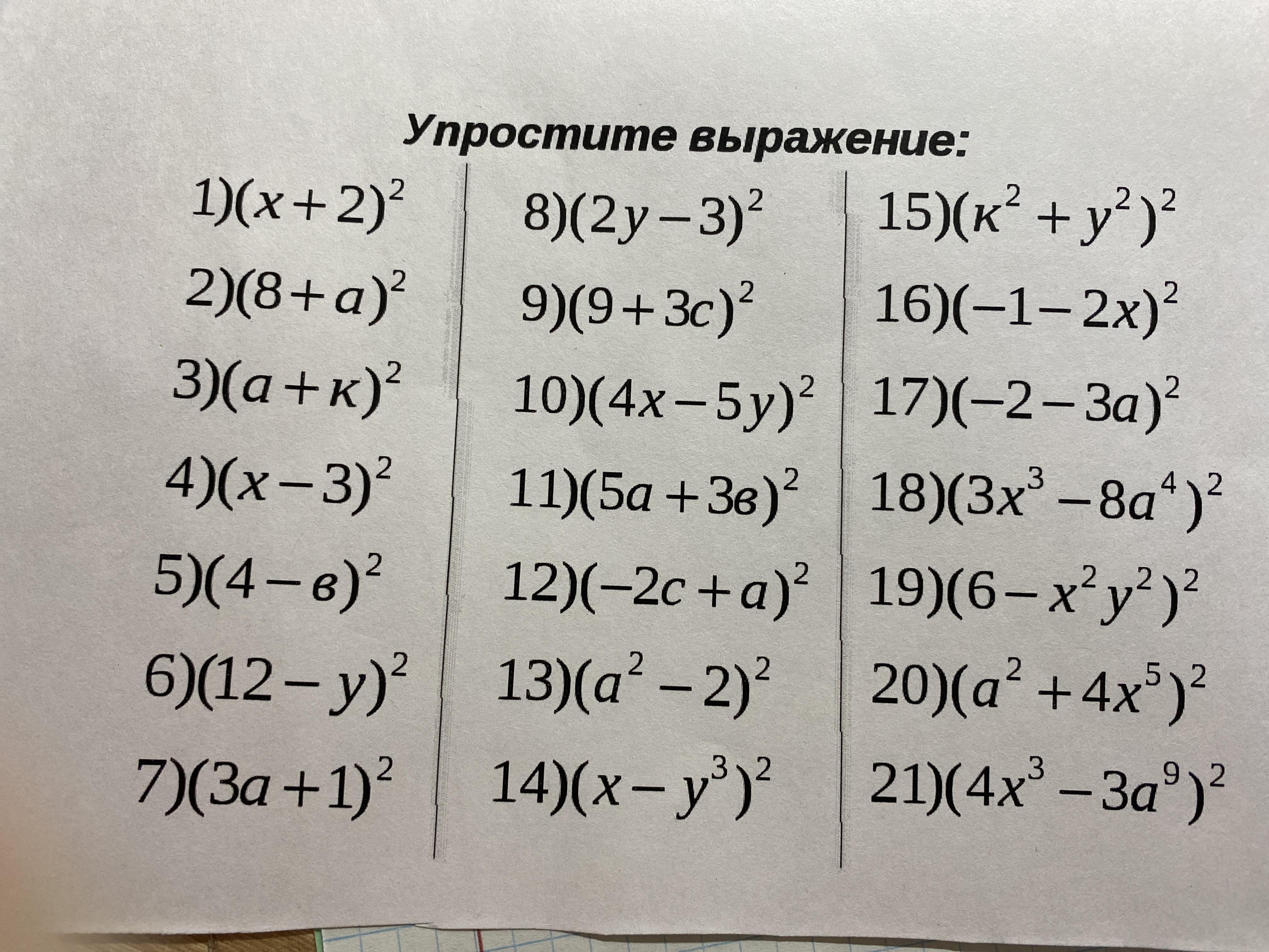 а²+2ак+к²