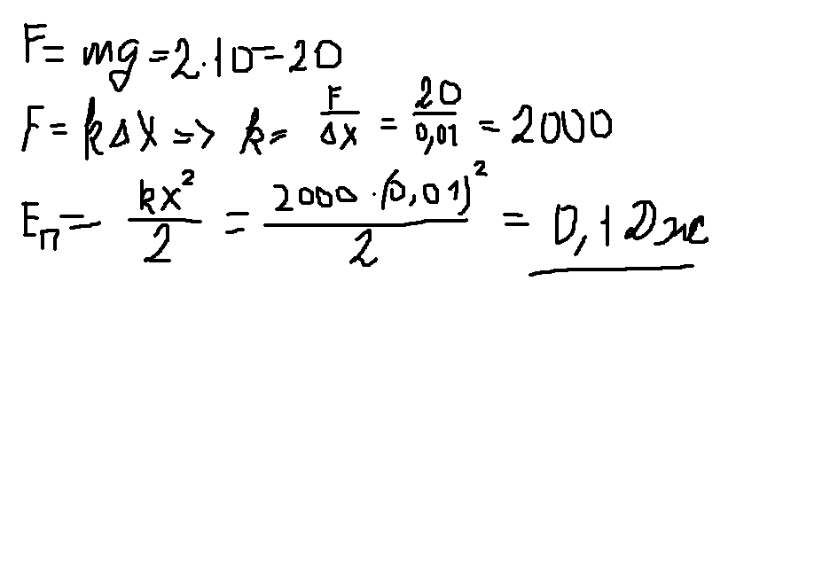 Груз массой 2кг,положенный на легкую чашу пружинных бытовых весов, сжимает пружину на 10 мм. Чему равна потенциальная энергия сжатой пружины?