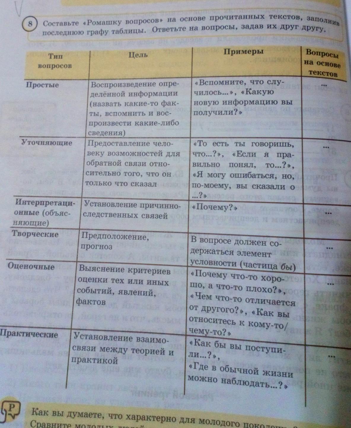 последнюю графу таблицы. ответьте на вопросы, задав их друг другу.