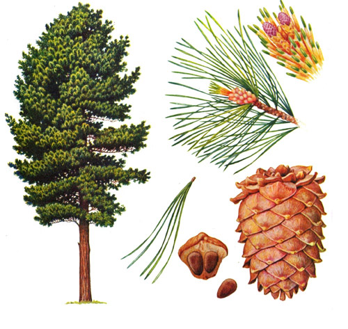 стебель корень хвоя шишка)