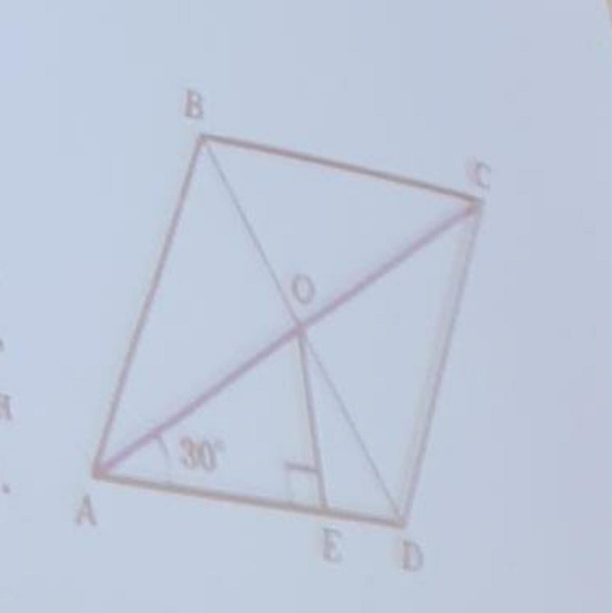 Диагонали параллелограмма точкой пересечения____поэтому АО=___=____см. Треугольник АОЕ—прямоугольный с гипотенузой_____и острым углом А, равным_____°. Поэтому катет ОЕ, лежащий против ушла в ___°, равен ___, т.е. ОЕ=____см=____см.