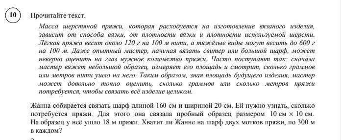576 < 600, значит двух мотков по 300 м хватит на шарф.