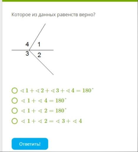 Угол 1 и угол 4 смежные сумма равна 180 градусам