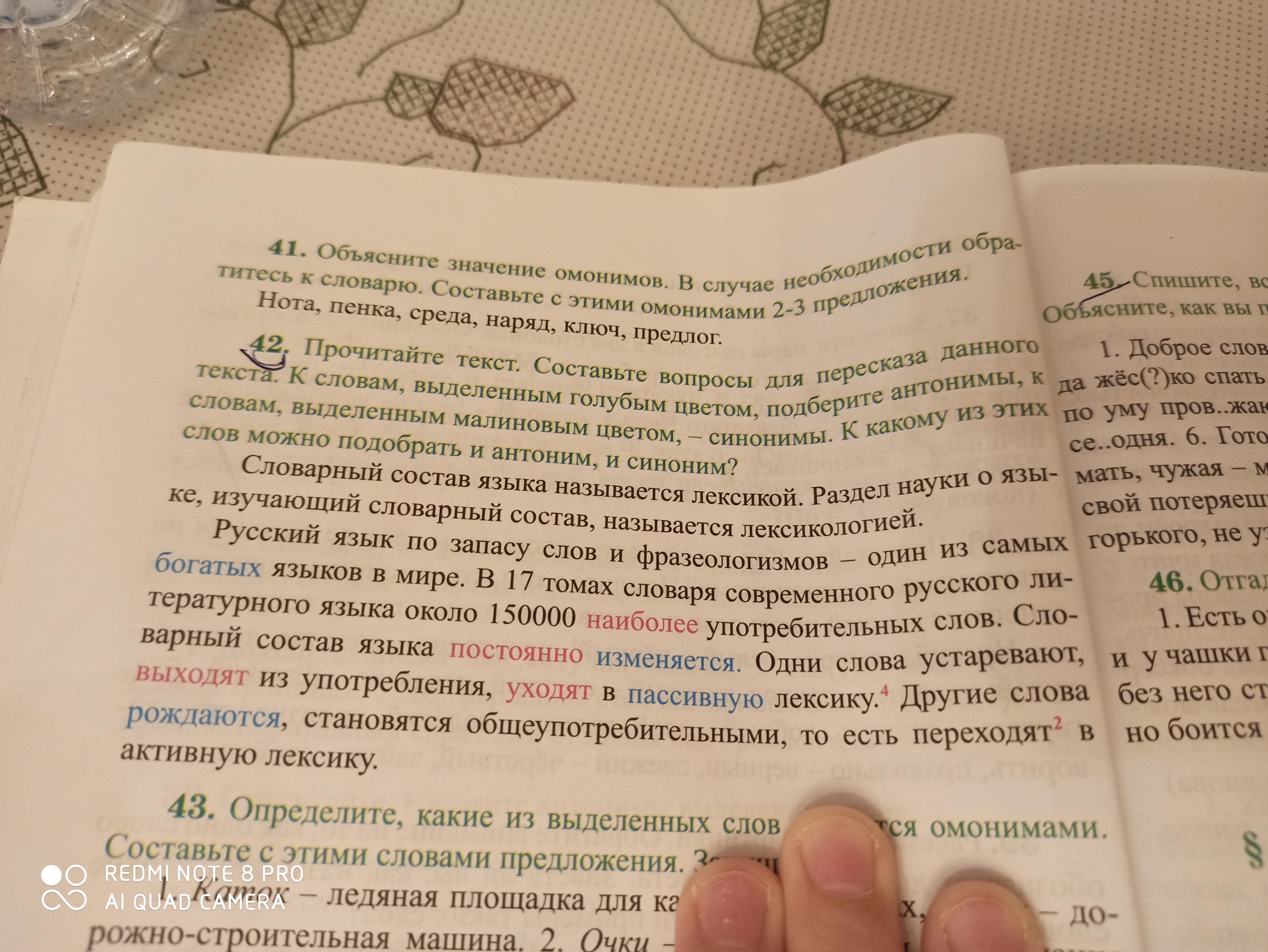 Прочитайте текст. Составьте вопросы для пересказа данного текста. К словам, выделенным голубым цветом, подберите антонимы, к словам, выделенным малиновым цветом, - синонимы. К какому из этих слов можно подобрать и антоним, и синоним?