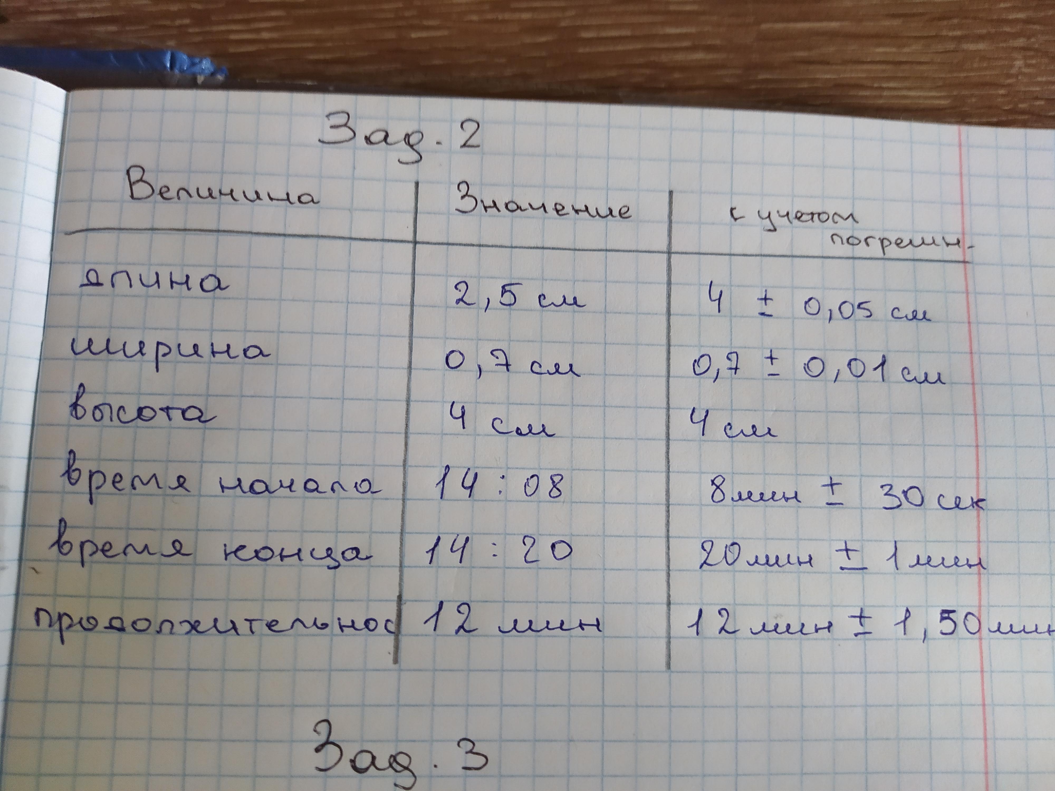 5. Определи момент времени завершения измерений. Определи продолжительность выполнения задания. Время начала и конца выполнения задания запиши с учетом погрешности измерения.
