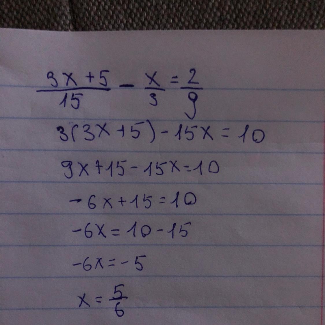 3x+5/15-x/3=2/9