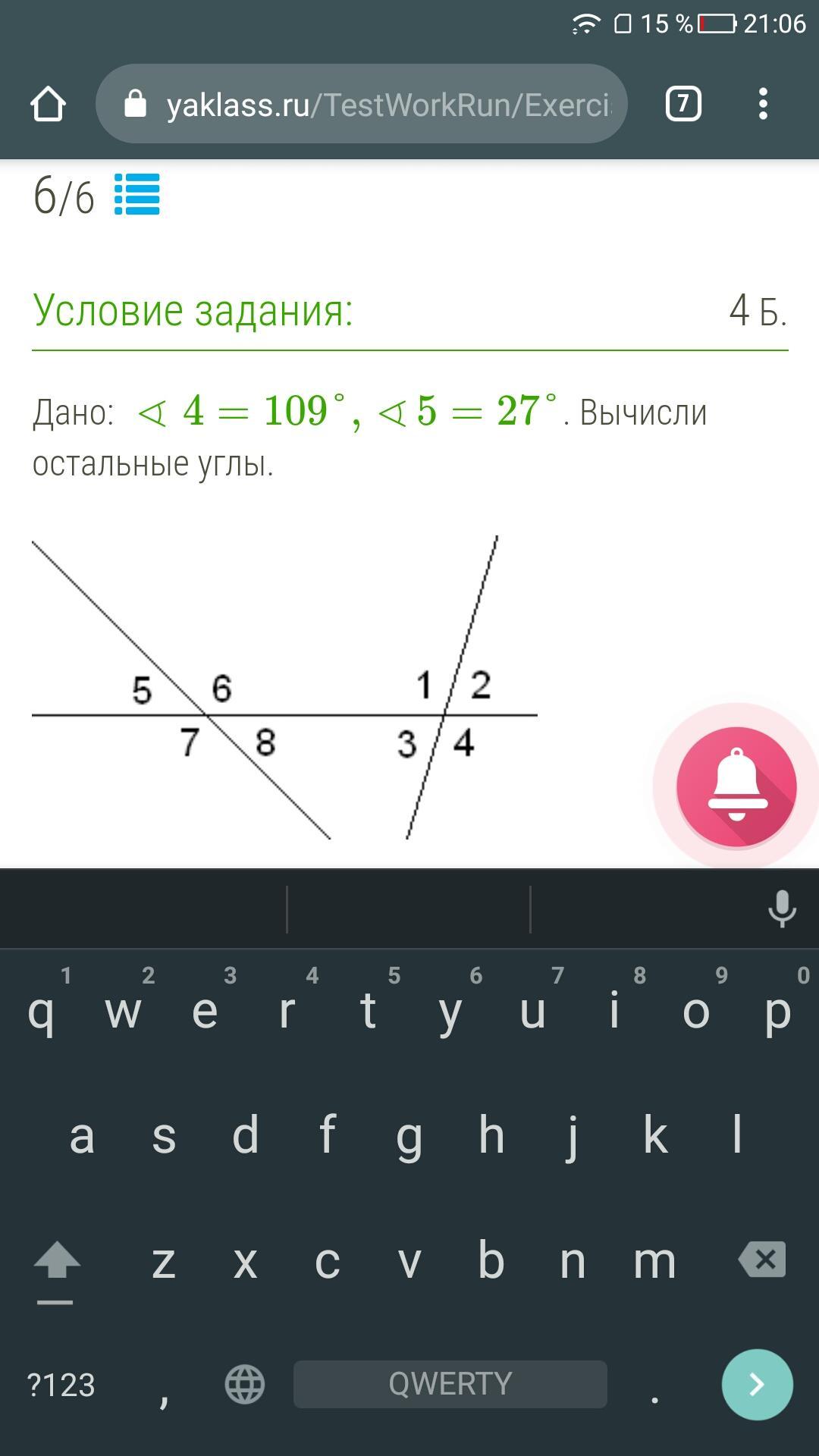 СРОЧНО! Дано: ∢4=109°,∢5=27°. Вычисли остальные углы.