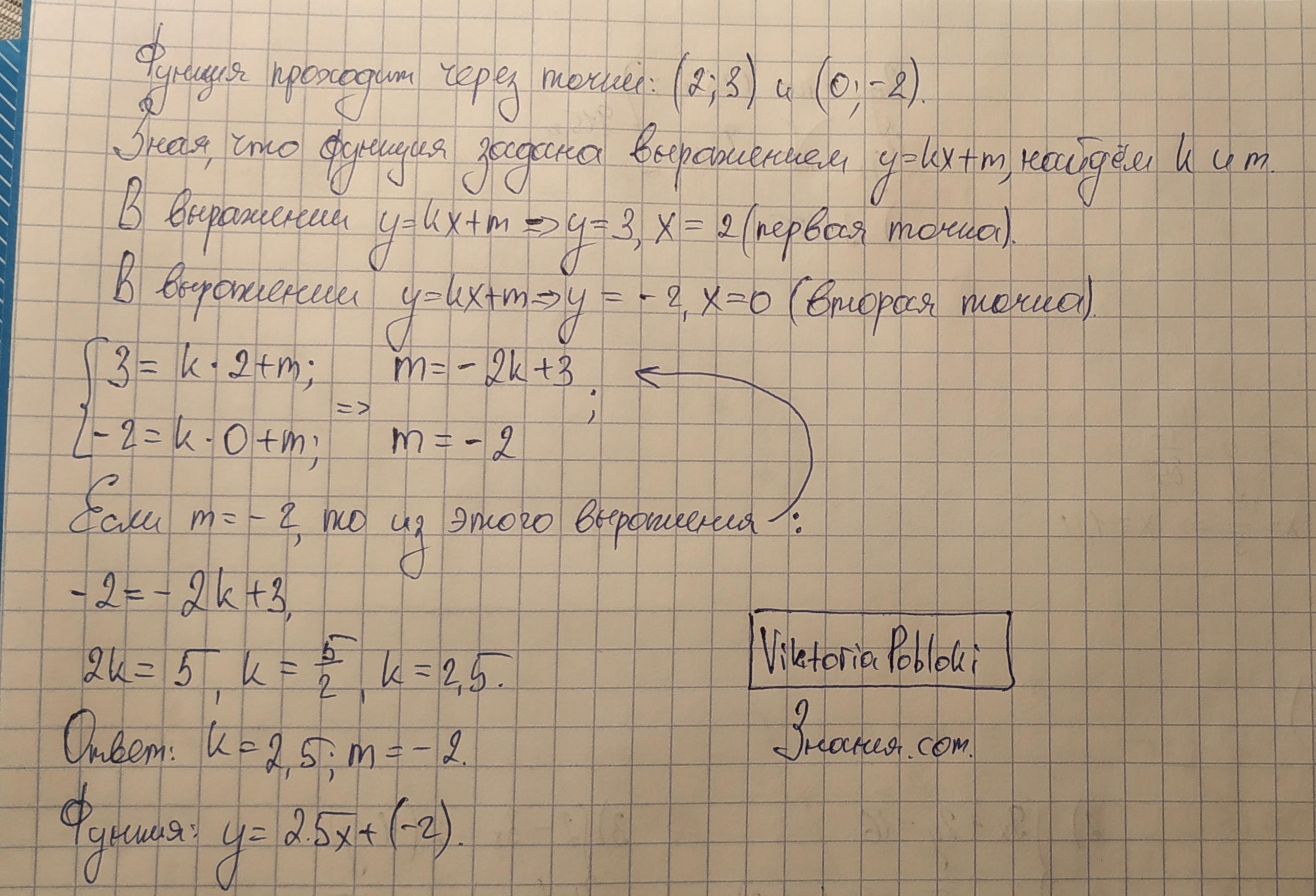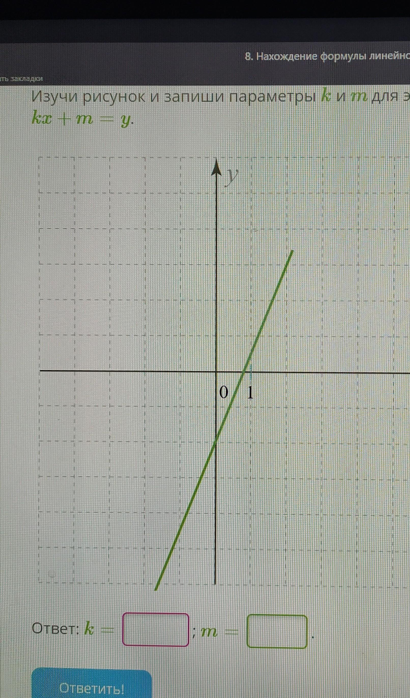 изучи рисунок и запиши параметры k и m для этого графика функции. Формула линейной функции— kx+m=y
