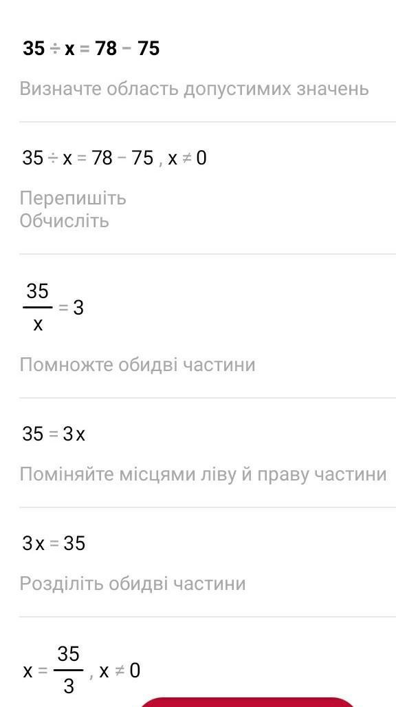 Как решить уравнение 35:x