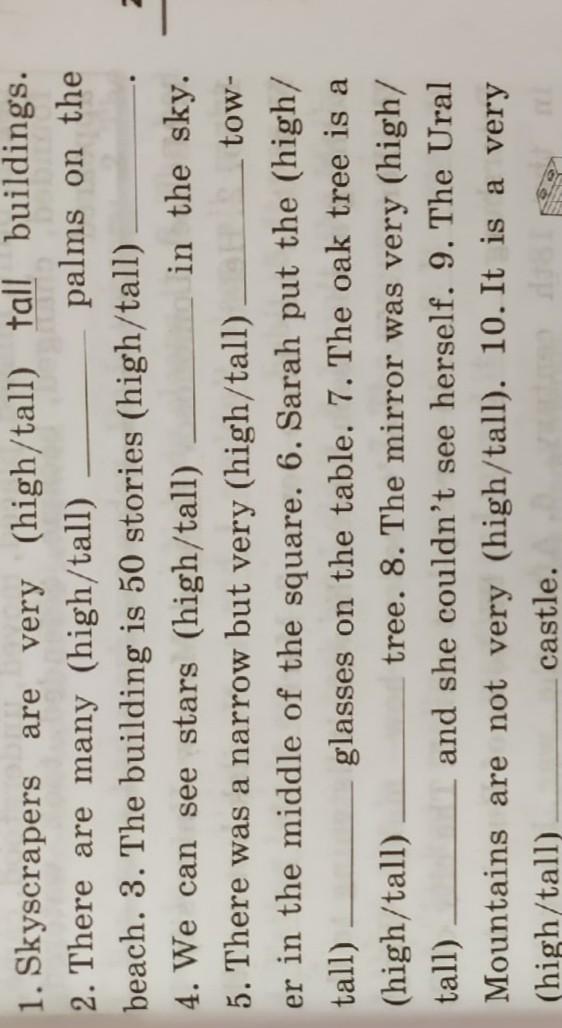 1. tall 2. high 3. high 4. high 5. tall 6. high 7. tall 8. tall 9. high 10. high (НО Я НЕ УВЕРЕНА!!!)