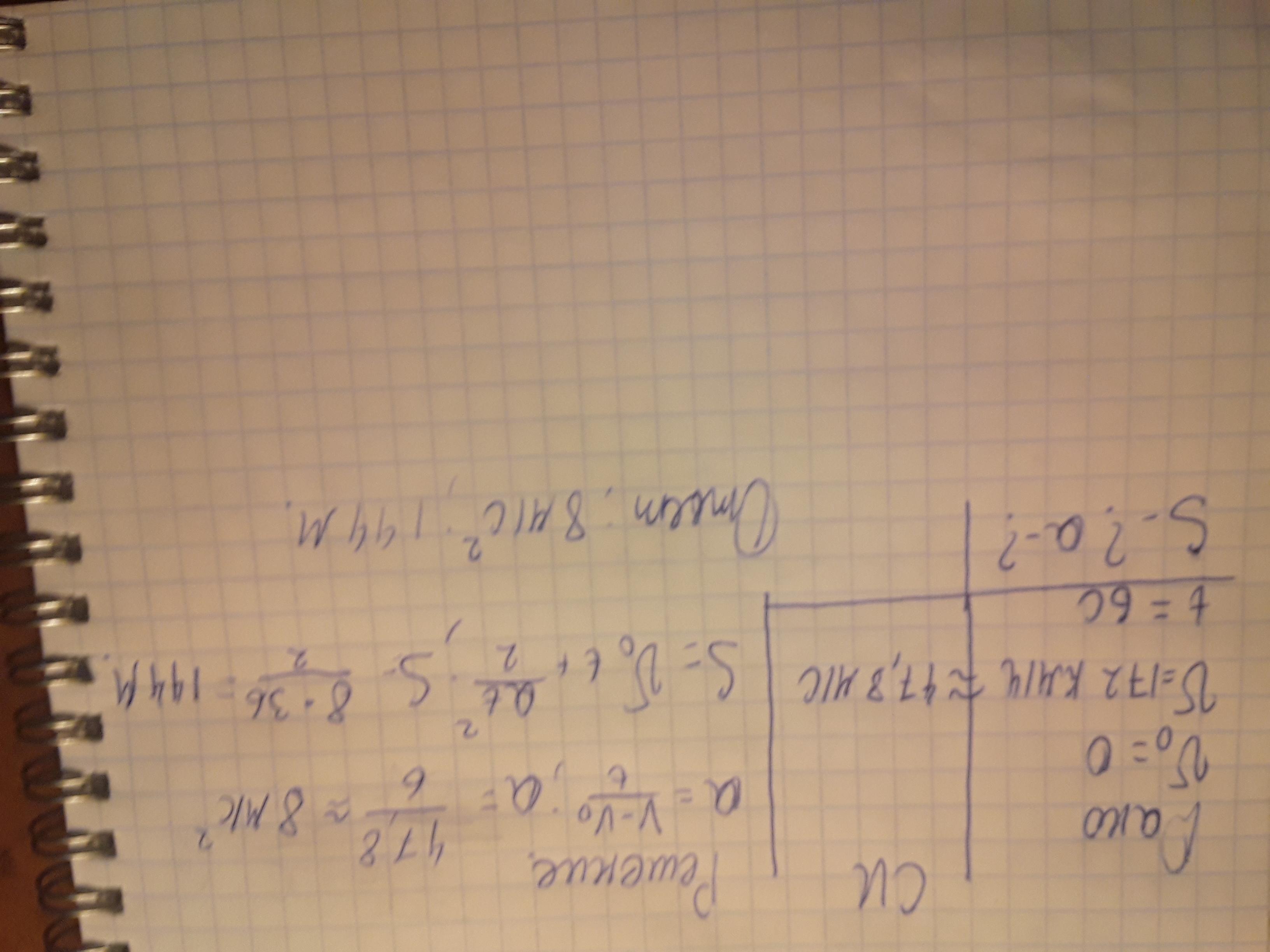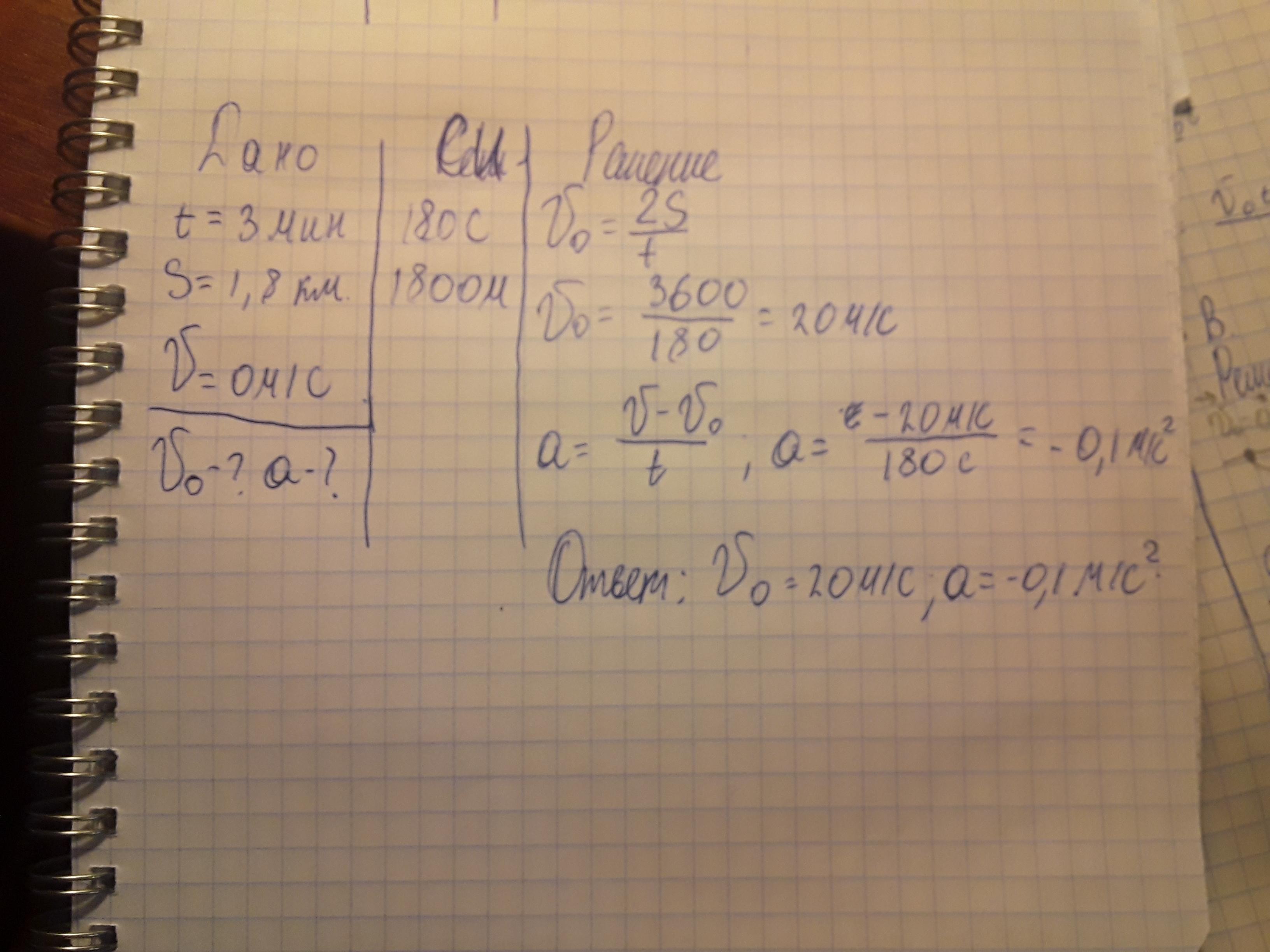 2) Поезд после начала торможения остановился через 3мин, проехав 1,8км. Найти начальную скорость и ускорение поезда.