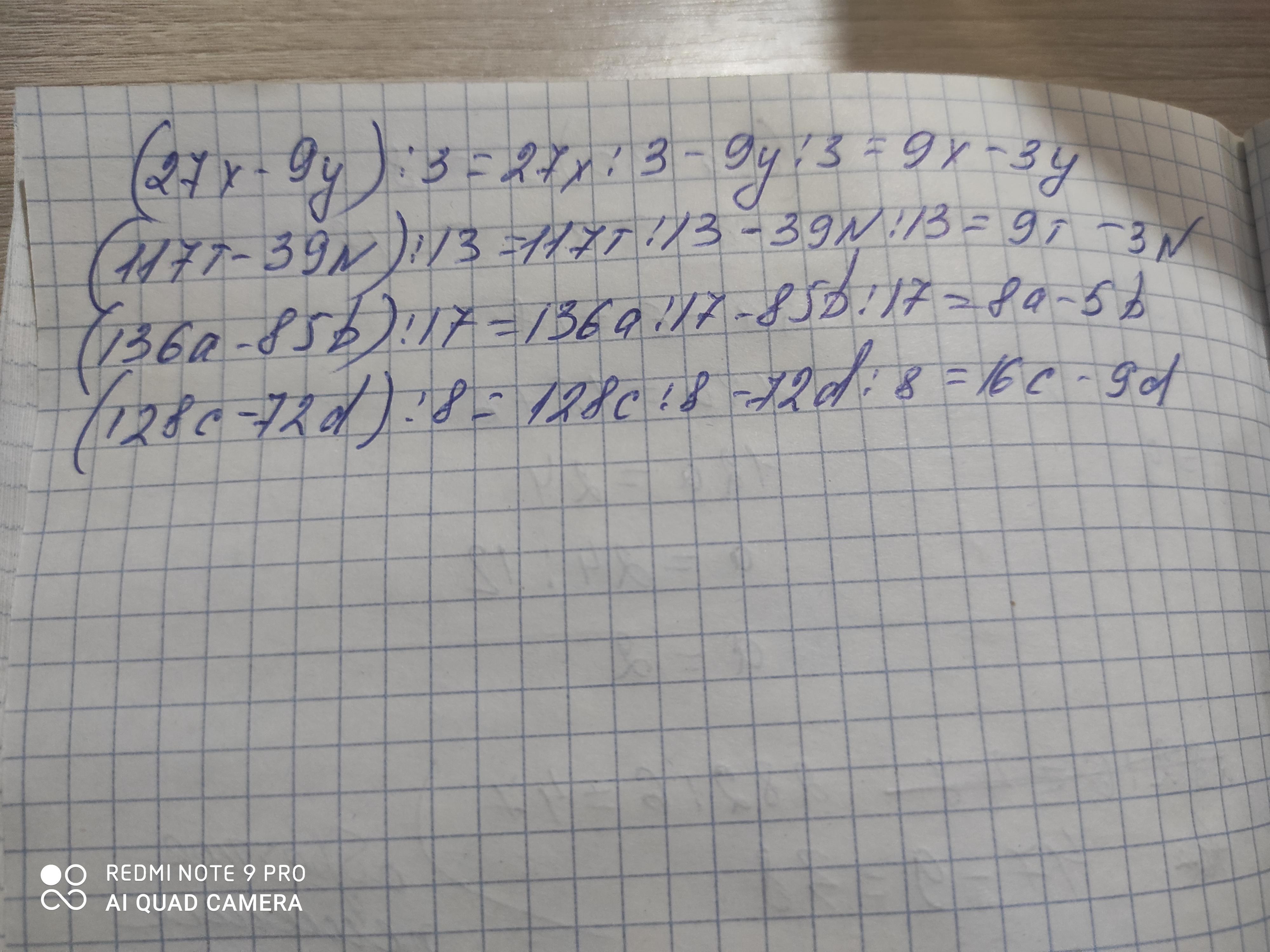 1) (27x – 9y) : 3;