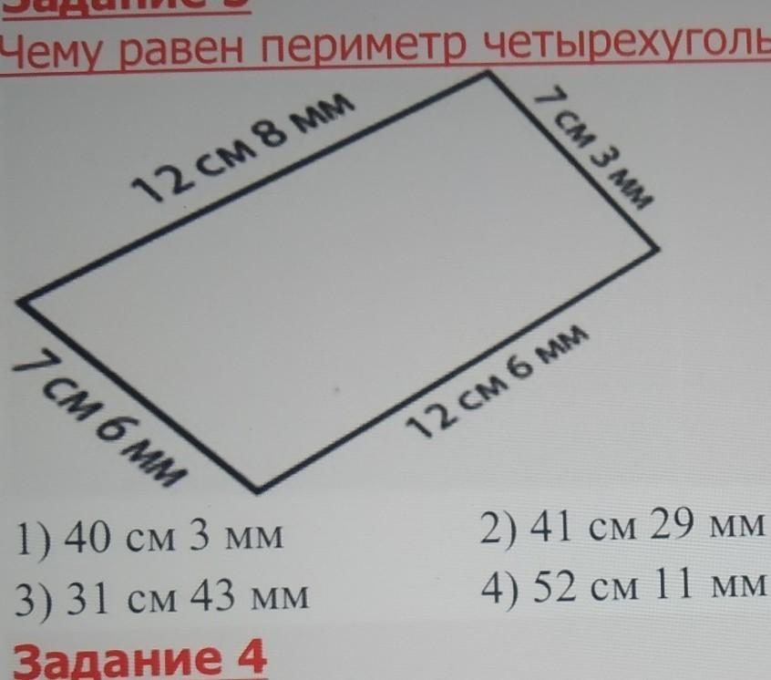 Р = 12,6 + 7,3 + 12,8 + 7,6 = 40,3 (мм) = 40 см 3 мм