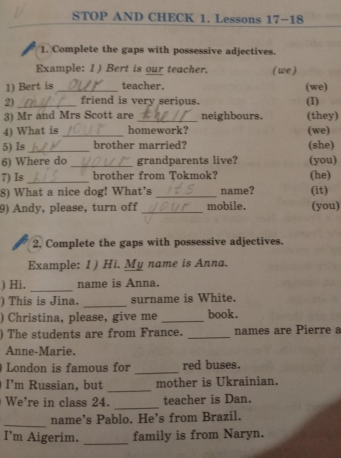 2. 1)my 2) her 3) your 4) their 5) its 6) my 7) our 8) his 9) my