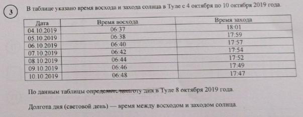 по данным таблицы определите долготу дня в Туле с 8 октября 2019 года
