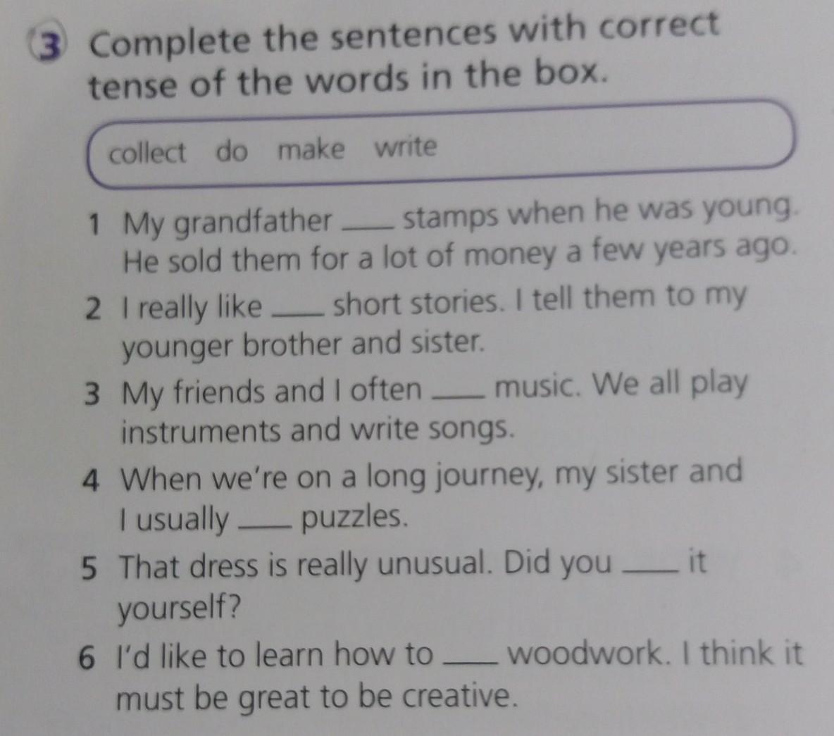 Complete the sentences with correct tense of the words in the box.
