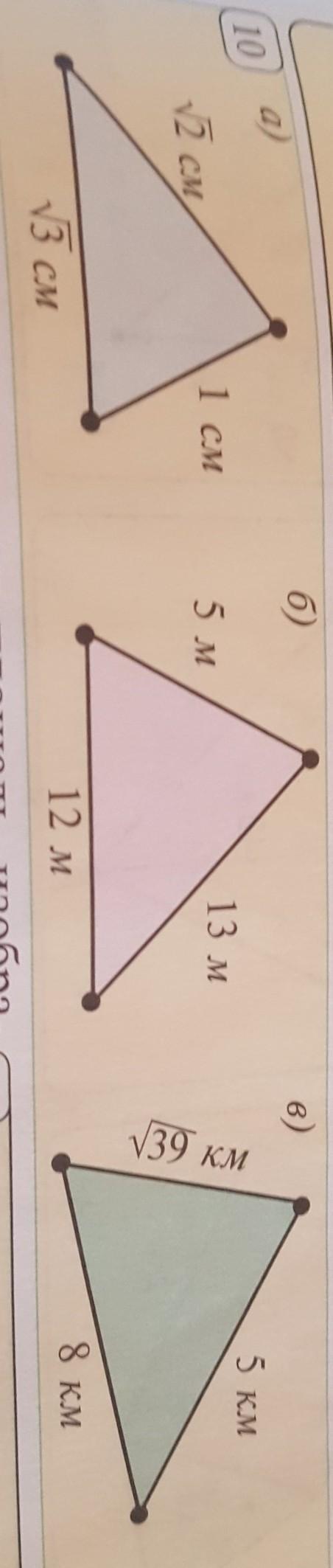 на рис.10 с некоторой неточностью изображены треугольники. какие из них являются прямоугольными? помогите пожалуйста, очень срочно!!!