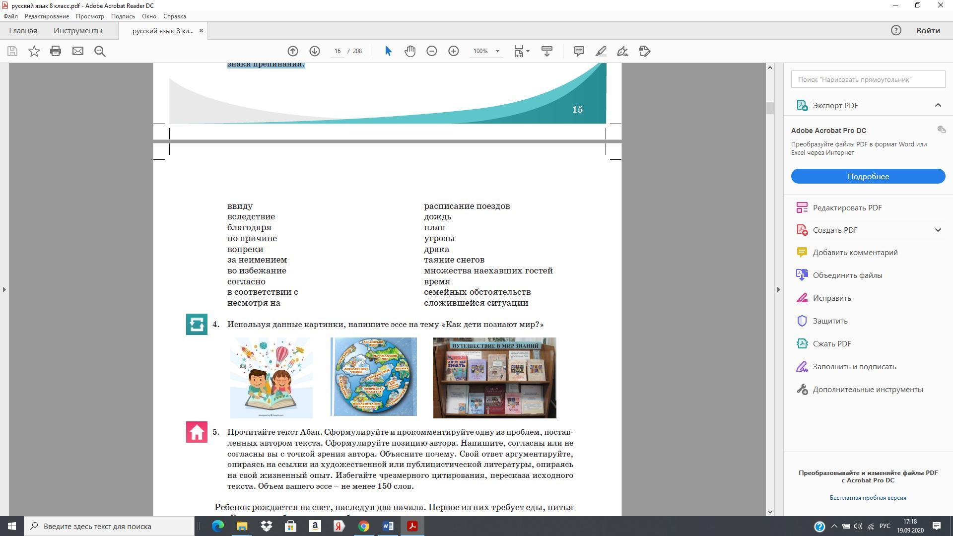 Составьте словосочетания, соединив предлоги с подходящими по смыслу словами или выражениями. На основе этих словосочетаний запишите предложения и расставьте знаки препинания.