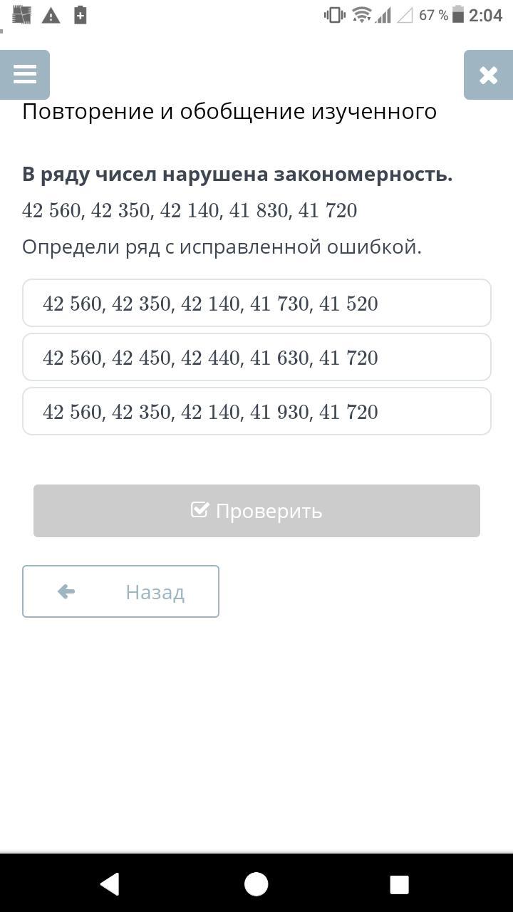 Ряд с исправленной ошибкой номер 2:42 560, 42 350, 42 140, 41 730, 41 520.