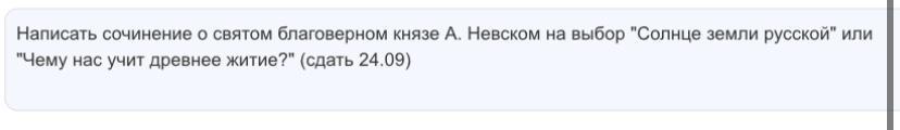 Об Александре Невском я узнал на уроке.он -знаменитый князь,персонаж истории всей страны.жил в средние века.церковь считала его праведником,а все потому что он защищал русскую землю.он был сильный ,красивый и отличался большим умом.считалось,что Александру помогает Бог.основным правилом его было:не в силе Бог,а в правде.он был светлой надеждой для всех людей,поэтому люди ждали его как ,,солнце,,