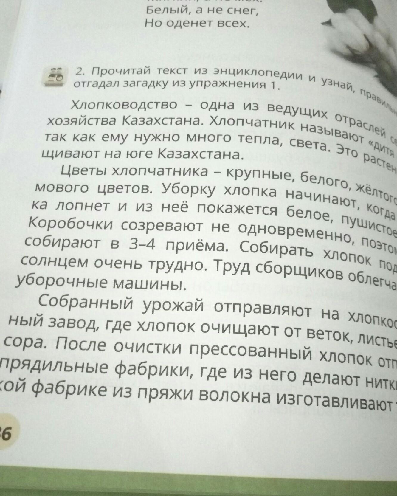 Текст не художественный.Вид текста:повествование с элементами описания.Опорные слова:хлопководство,хлопок,урожай,хлопчатник,фабрики,волокно