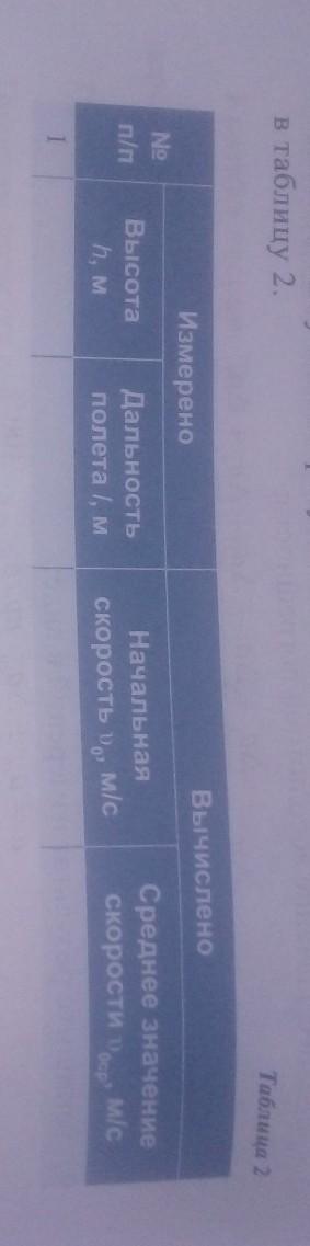 рассчитайте значение начальной скорости для каждого опыта по формуле (3) результаты занесите в таблицу.