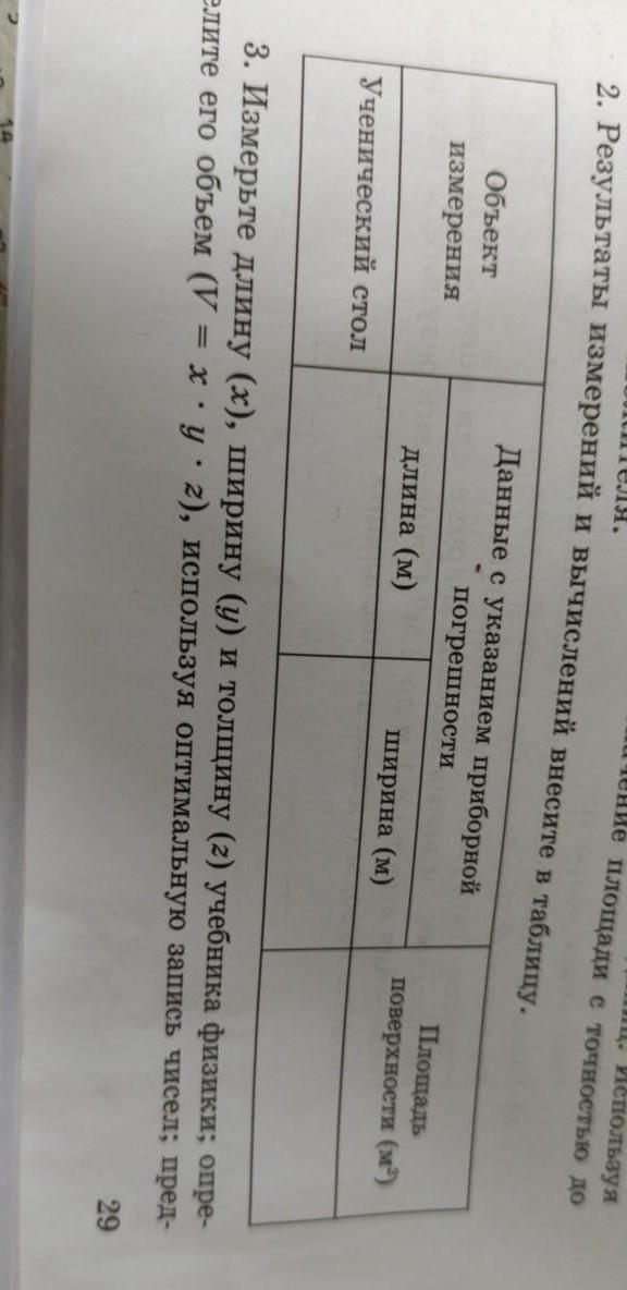 Тут ты должен(-а) измерить длину и ширину твоего стола, за которым ты делаешь уроки. Типа простой ученический стол. Потом перемножить длину и ширину, и тогда у тебя получится площадь поверхности. Её, как и все результаты ты записываешь в таблицу и всё, ничего сложного
