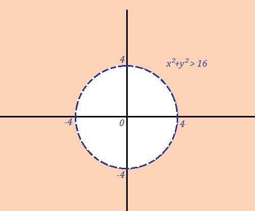 Заданная область - это часть плоскости, расположенная вне круга с центром в точке (0;0) и радиуса R=4 , граница круга в эту область не входит .