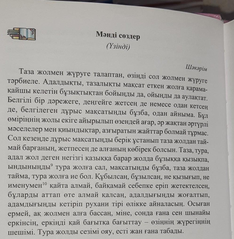 • Өзің өмір жолыңда нені басшылыққа аласың? Неліктен?