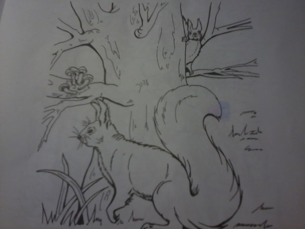 В лісі де було тихо і спокійно, жили 2 білочки. Одна любила трудитися і дарма не проводити ні хвилини, а друга тільки пустувала й втікала від подруги можна їх трохи описати....
