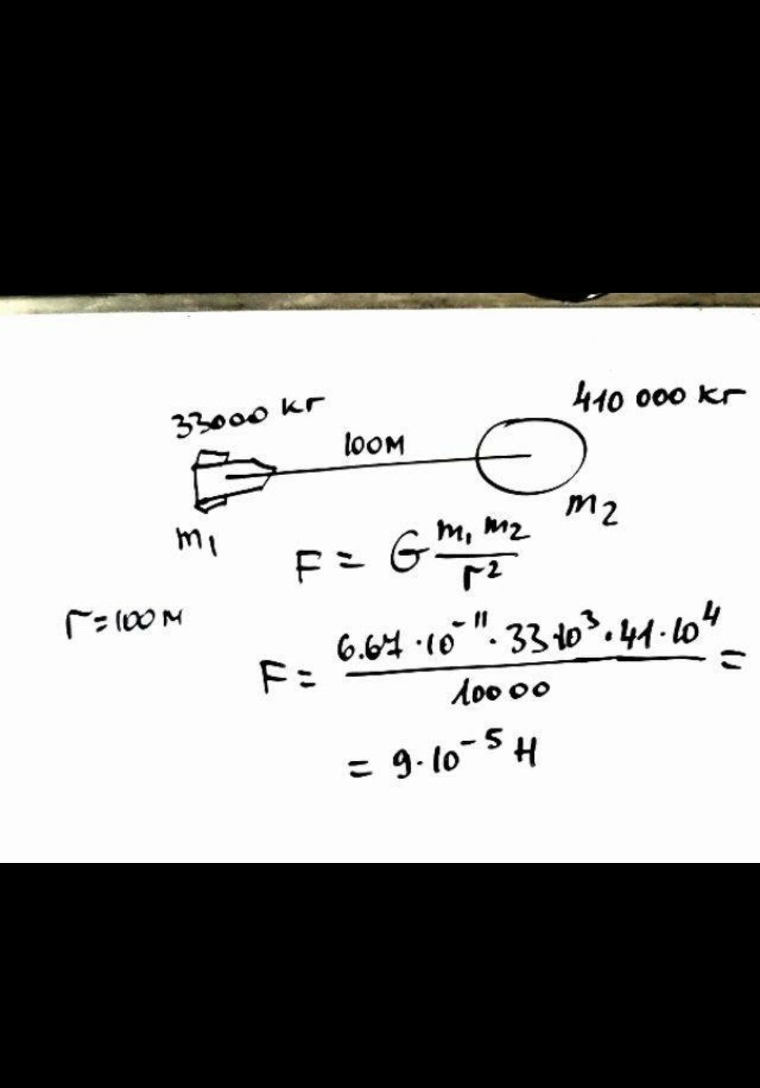Ракета-носитель массой 33 и приближается к международной космической станции массой 410т.Определите силу притяжения в момент,когда расстояние между их центрами масс уменьшилось до 100м!